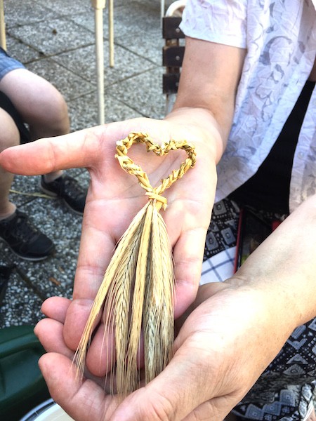 Poleg prikaza same priprave materiala za pletenje smo tako obiskovalcem pokazali, kako se plete kita s štirimi in sedmimi slamicami, pa tudi tehniko s prepogibanjem sedmih slamic. Kar nekaj mimoidočih se je preizkusilo v pletenju in tako so nastale zapestnice, slamnati okrasi v obliki srca in celo en prstan.