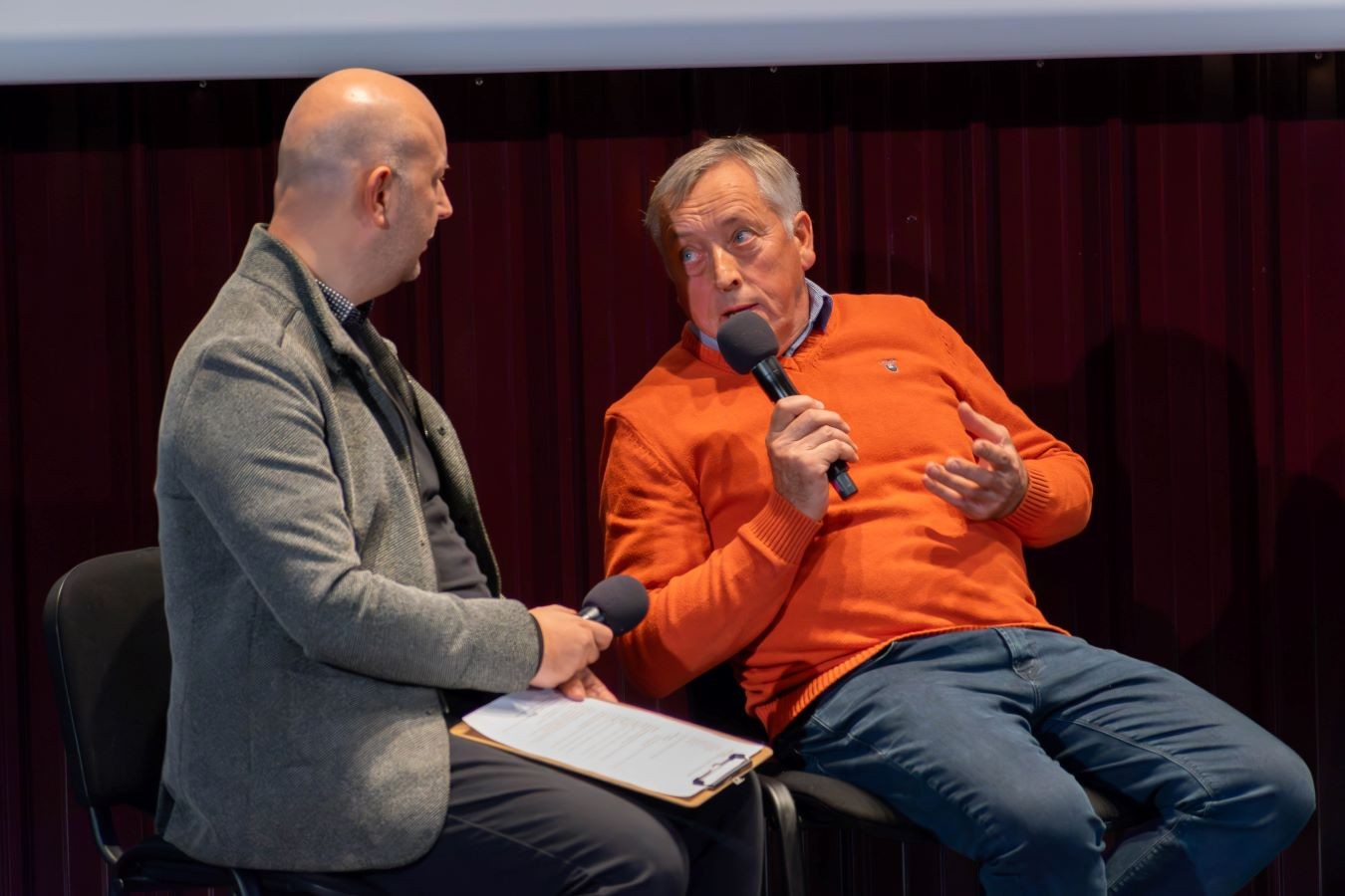Po ogledu filma je sledil pogovor z ustvarjalci, kjer smo osvetlili zakulisje snemanja in celoten potek projekta 'Obujanje pletarske dediščine'. V veselje nam je bilo v občinstvu pozdraviti predstavnika Razvojnega društva Merišče iz Merč, katerega člani so nastopili v posnetkih prikaza grabljenja listja in prevoza žbrinc z volovsko vprego. S temi arhivskimi posnetki RTV Slovenija smo v film vnesli upodobljene besede naših pričevalcev v duhu preteklih dni.